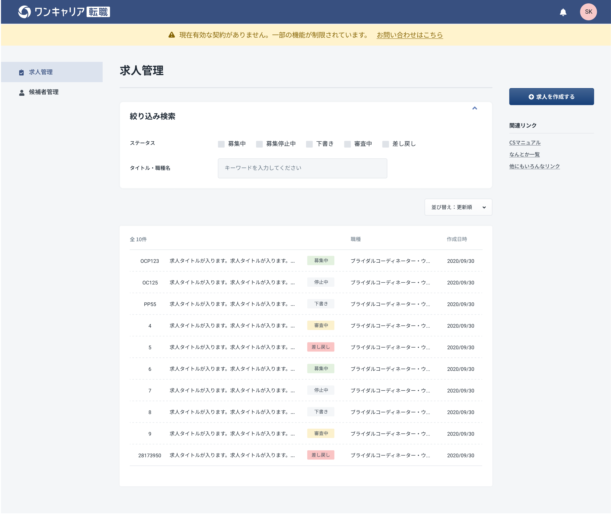 以下の場合には求人をご紹介できないことがございます。